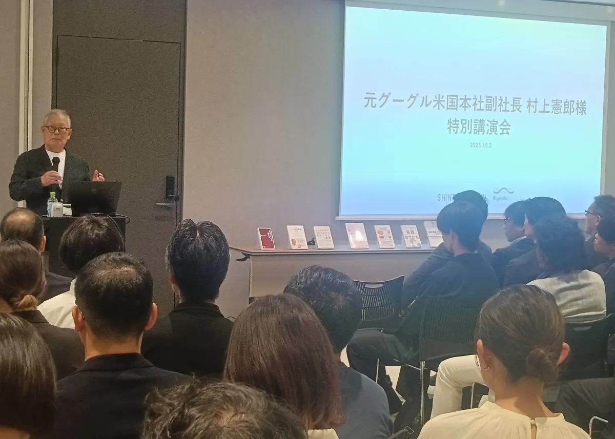 2025年10月3日、広告会社として初めて「AIドリブン宣言」を掲げる株式会社新東通信は、元グーグル米国本社副社長であり、グーグル・ジャパン代表取締役社長も歴任した村上憲郎氏を招いた特別講演会を実施しました。この講演会は新東通信グループの全社員を対象に、AI活用の重要性について考える機会として企画されました。