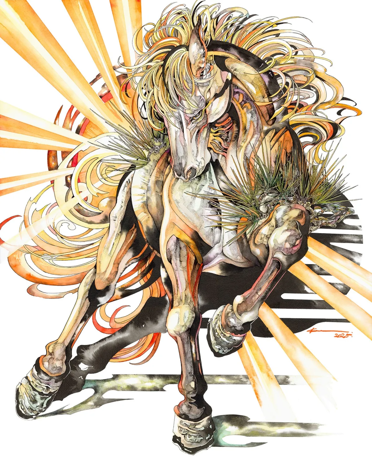 KEN MATSUDA氏の作品は、彼の独特な視点で表現された動植物の美しさが際立っています。ペンによる精緻な線描と、色彩のグラデーションが見事に共鳴することで、幻想的な世界観が広がります。今年の個展では、華やかな作品から荘厳さを漂わせるものまで、多種多様な新作が用意されています。特に、墨を使った新しい試みもあり、これまでの作品とは一味違ったKEN MATSUDA氏の魅力を感じることができるでしょう。