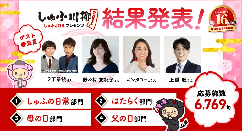1次審査ではノミネート作品が選ばれ、その後の2次審査では初めて一般参加者の投票が実施されるなど、透明性のある選考プロセスが特徴的でした。最終審査には、野々村友紀子さん、二丁拳銃、キンタロー。などがゲスト審査員として参加し、プロの目で選び抜かれた作品が評価されました。また、カテゴリーごとに分かれた部門での受賞も行われ、生活や仕事のリアルを五・七・五に表現した作品が集まりました。
