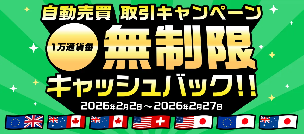 インヴァスト証券株式会社が提供する外国為替取引サービス「トライオートFX」では、2026年2月2日から2月27日までの期間、特別なキャンペーンを実施します。このキャンペーンでは、新たに稼働した対象通貨ペアの自動売買取引に対し、1万通貨あたり最大200円のキャッシュバックが無制限で受けられます。このため、取引をするほどお得になる機会です。