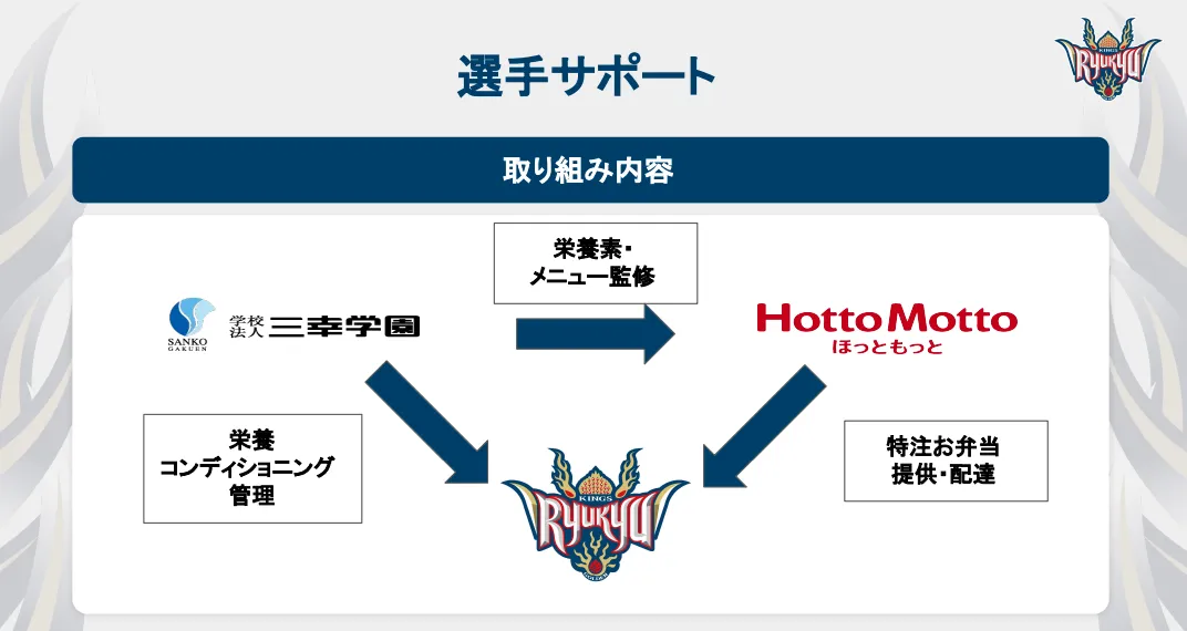 食は選手のパフォーマンスに密接に関わっています。選手たちが最高の結果を出すためには、栄養バランスの取れた食事が不可欠です。この協定により、沖縄リゾート&スポーツ専門学校の栄養トレーナーコースの教員と学生が、選手たちに最適なメニューや栄養管理のアドバイスを提供します。さらに、株式会社ブレンズが制作するお弁当は、選手たちのニーズに合わせた特別なものです。これにより、選手たちは日々のトレーニングを支えるための食事を効率的に摂取できるようになるでしょう。