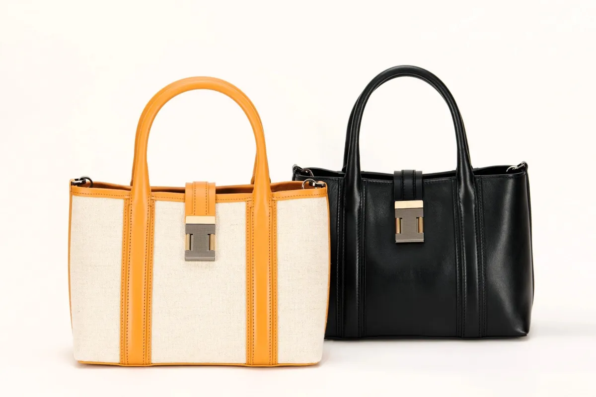 「Nox Tote」は、実用性とデザイン性のバランスを重視して設計されています。広々としたコンパートメントは、毎日の生活に必要な物をしっかりと収納できる機能性を実現しています。素材には、ベージュトーンのリネンとコットンを混紡したナチュラルファブリックや、控えめな光沢が魅力的なブラックのカーフレザーが使用され、どちらもサマースタイルを引き立てるデザインです。