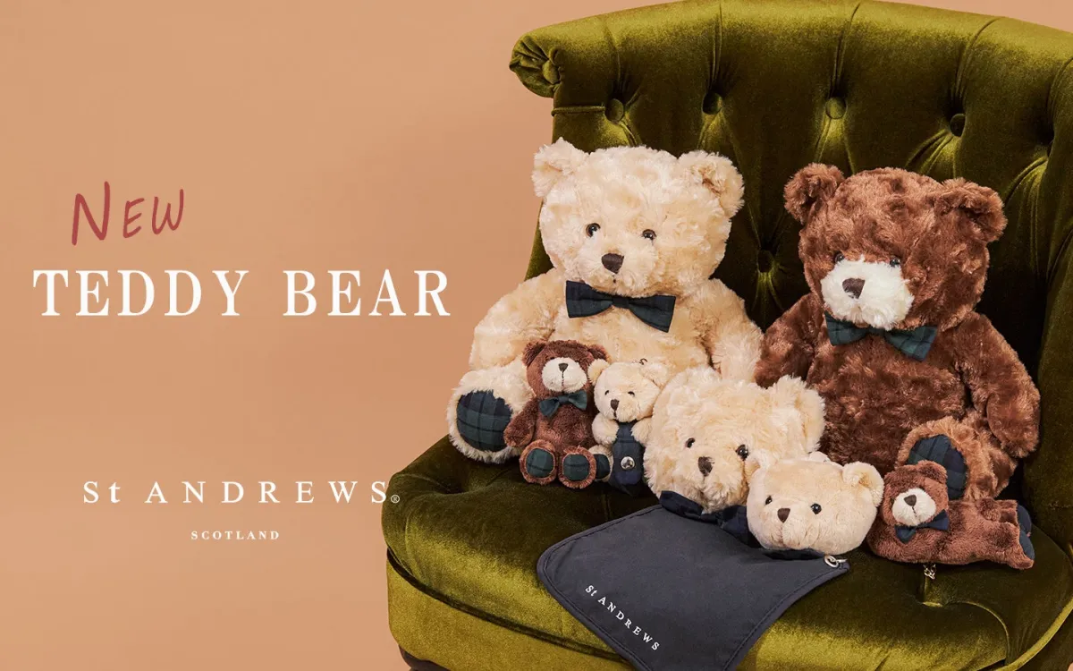 ゴルフファンの注目を集める「セント・アンドリュース」から、人気のテディベアアクセサリーシリーズに新色が加わりました。このたび新たに仲間入りしたのは、シックなブラウンのテディベアで、定番のベージュもリニューアルされ、さらに魅力的なラインナップが揃いました。