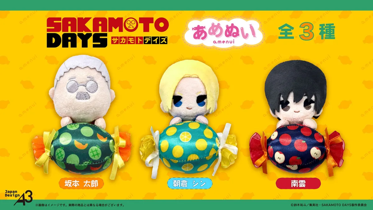 「あめぬい」は、キャラクターがキャンディを抱えているユニークなデザインが特徴のぬいぐるみシリーズ。株式会社A3により製作されています。今回発売されるのは、坂本太郎、朝倉シン、そして南雲の3種類。それぞれのキャラクターが持つ個性と魅力が、大きさ約10〜12cmのサイズに詰まっています。このサイズ感は、コレクションするにも最適で、可愛さも抜群です。