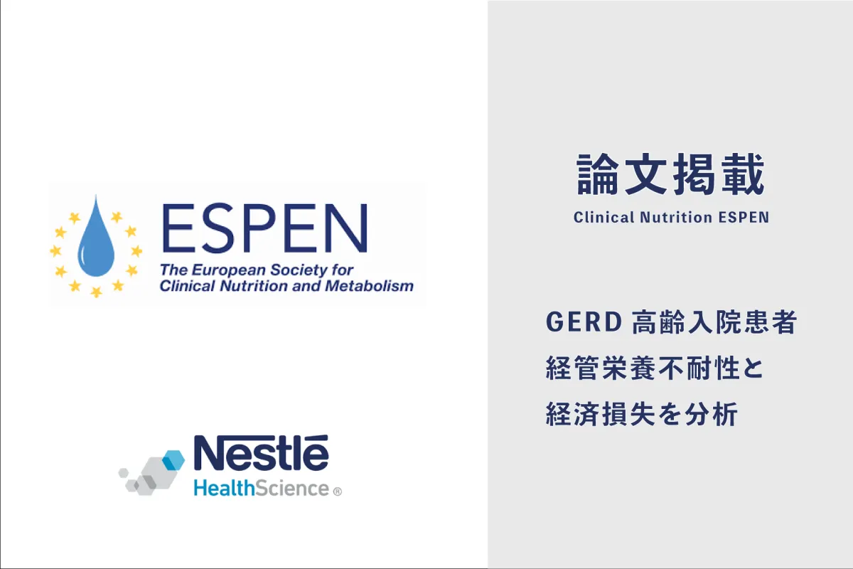 最近、国際的な学術雑誌『Clinical Nutrition ESPEN』にて、高齢の胃食道逆流症(GERD)患者に対する経管栄養不耐性が病院に与える経済的影響に関する研究結果が発表されました。この研究は、ネスレ日本株式会社のネスレ ヘルスサイエンスと医療法人錦秀会が共同で行ったもので、筆頭著者はネスレ ヘルスサイエンスの鎌田征和氏です。
