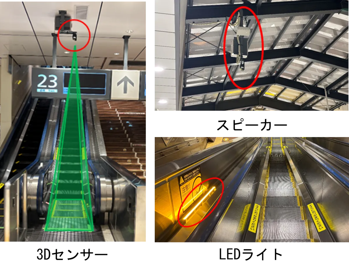 3Dセンサーがエスカレーター降り口近くでお客様の動きをリアルタイムで監視し、滞留が発生した場合には即座に警告を発し、続いてエスカレーターを停止します。このプロセスにより、必要な対応が迅速に行われることが期待されています。