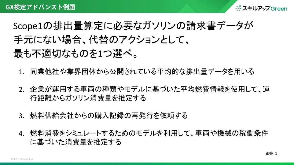 GX検定アドバンストの講座では、動画を用いた講義や演習、確認テストを通じて実践的なスキルを習得できます。特に、Scope 1および2の排出量を算定する実践的な取り組みが評価されており、これによって受講者は自らの企業における脱炭素経営をさらに深化させる道を切り開いています。