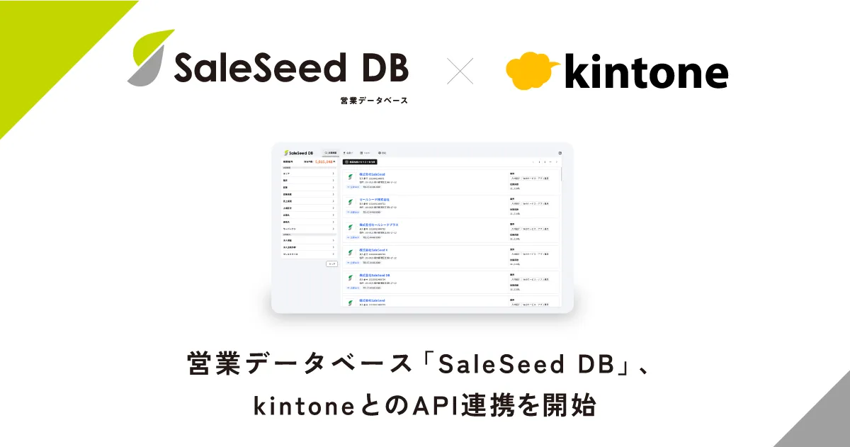 営業の効率化が求められる現代、株式会社SaleSeedが新たな一手を打ち出しました。2026年2月4日より、同社が提供する営業データベース「SaleSeed DB」とサイボウズ社の「kintone」とのAPI連携機能を開始します。この連携により、営業データの管理と運用がよりスムーズかつ効果的になります。