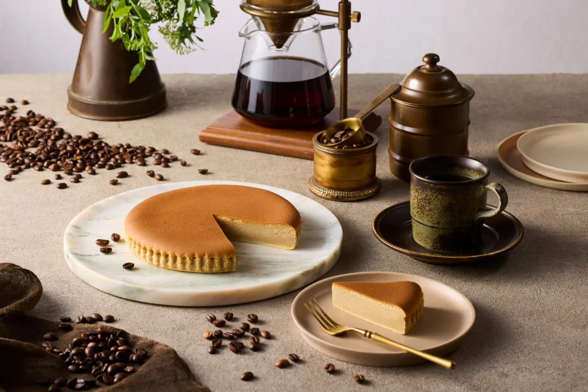 『御用邸珈琲チーズケーキ』は、季節限定のフレーバーとして登場し、これまでになかった「コーヒーフレーバー」を採用。しっとりとした食感の中に、アロマティックなコーヒーと濃厚なチーズの風味が広がります。このチーズケーキには、選び抜かれた数種類のチーズが使用されており、異なる風味を持つ2種類のコーヒーが組み合わされています。コーヒーの色合いと香り、味わいが、焼き上げる過程で絶妙に引き出されています。