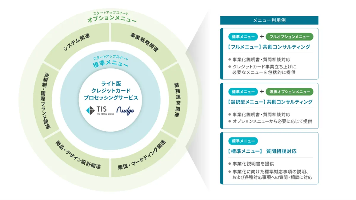 TISとナッジはこれらの課題を解決するため、2024年5月に「ライト版クレジットカードプロセッシングサービス」を開始しましたが、導入企業からはクレジットカード事業に関するさまざまな業務支援が求められていました。そこで、両社はスタートアップスイートを開発し、包括的なサービスを提供することになりました。