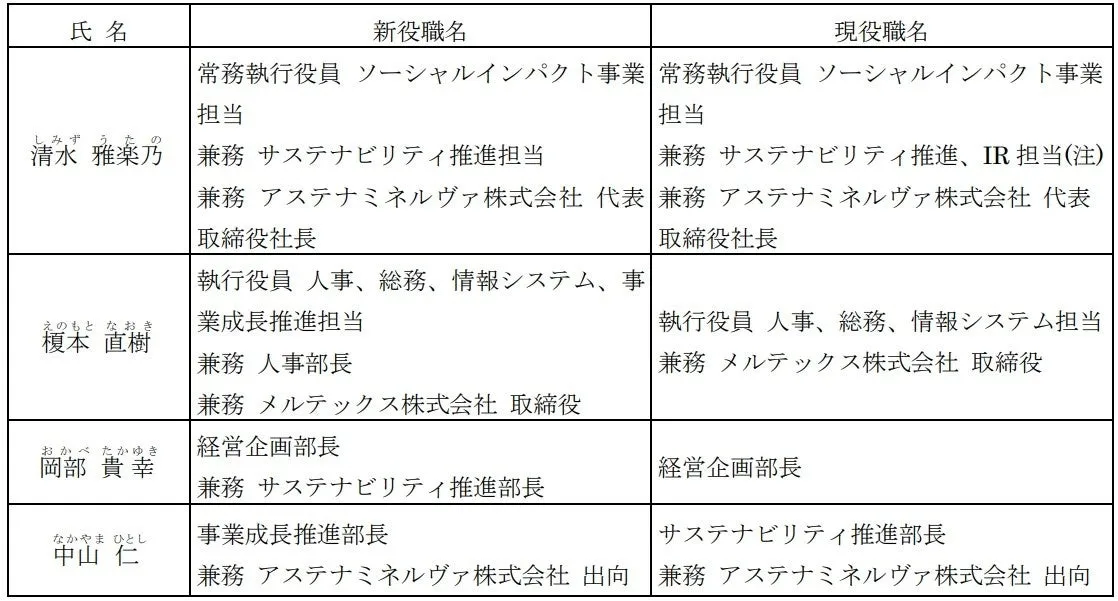 アステナホールディングス株式会社が組織変更と人事異動を発表