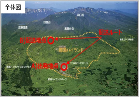 この実証事業では、那須ハイランドパークのB駐車場を出発点に、ハイランド別荘地内へのドローン配送が行われます。車両での移動が約13分を要するところ、ドローンを使うことでわずか7分での配送が可能となります。この迅速な配送は特徴として、予想外の自然災害時においても期待されています。実証実験では、ハザードマップを参考にした危険地域上空での飛行も計画されており、災害時の物資輸送や状況把握ができるかどうかを検証する重要な機会となるでしょう。