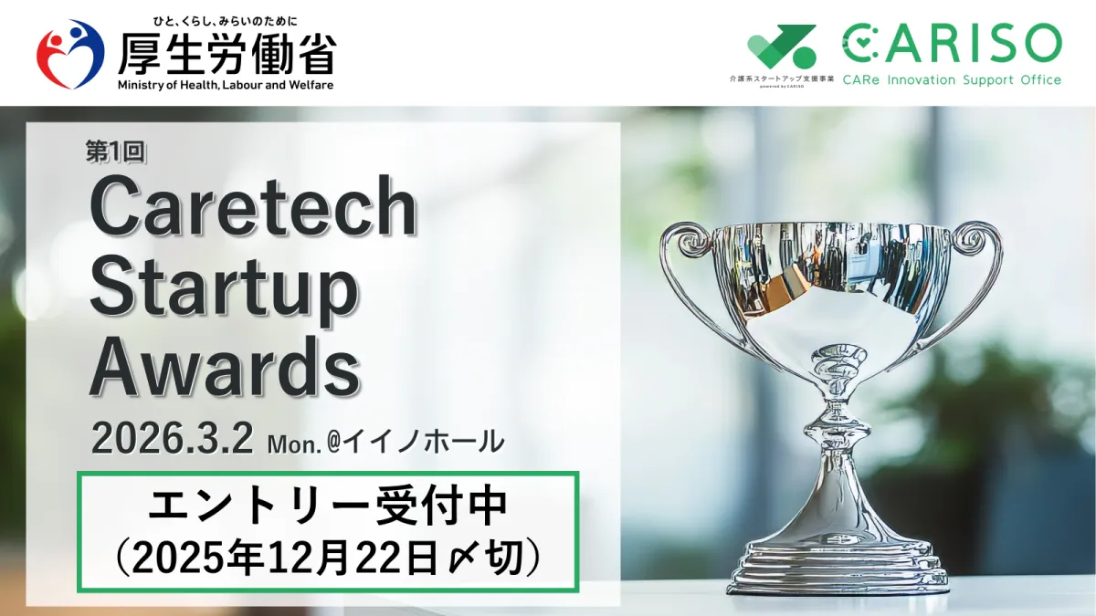 介護の分野においてテクノロジーの活用が進む中、厚生労働省が主催する『第1回CARISO Caretech Startup Awards』が開催されることが発表されました。このアワードは、介護現場での生産性向上とケアの質の確保を目指すスタートアップ企業を対象にしており、革新的な製品やサービスの開発に挑む企業に対して表彰が行われます。
