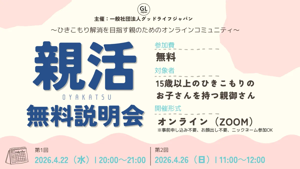 一般社団法人グッドライフジャパンが提供する新たなオンラインコミュニティ『親活』が、ひきこもりの子どもを持つ親のためにスタートします。このコミュニティは、孤立した状況にある親たちが安心して集まり、情報を交換し、学び合う場を提供することを目的としています。