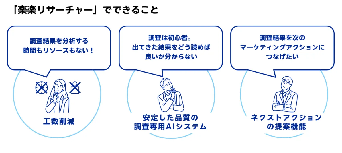 「楽楽リサーチャー」は、楽天インサイトが実施したインターネット調査のデータを活用し、AIアシスタントが設問ごとの分析コメントおよび調査全体の要点を自動生成する仕組みです。これにより、専門知識がなくても簡単に調査結果を解析できるようになることが期待されています。