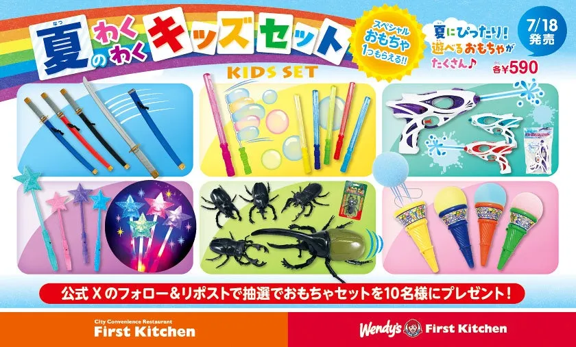 今年の夏も、ウェンディーズ・ジャパン株式会社とファーストキッチン株式会社が手を組み、7月18日から特別なキッズセットを発売します。この夏は子供たちを楽しませるために、見た目にも楽しいおもちゃが詰まった「スペシャルキッズセット」を用意しました。
