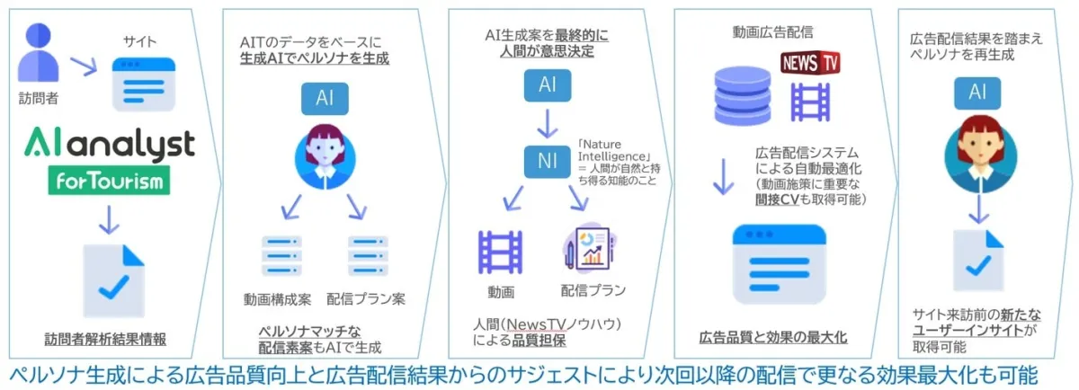 IFTは、JCDが開発したツーリズム業界向けのウェブサイト解析ツール「AIアナリストforツーリズム」(AIT)のデータや、ベクトルの動画広告配信のノウハウを融合させています。この組み合わせによって、動画広告の効果を最高のものにできる仕組みが整えられました。