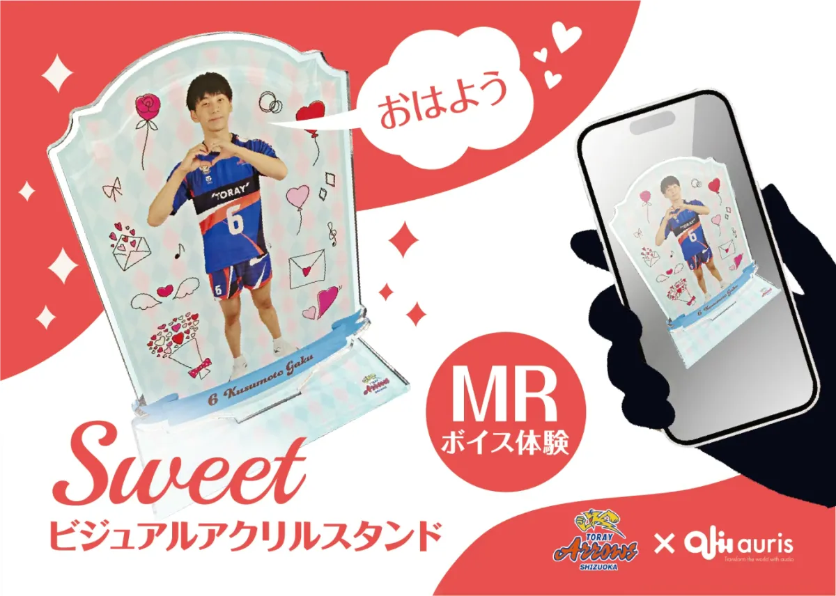 このサービスでは、バレンタインのシーズンにぴったりな「SWEETビジュアルアクリルスタンド」が販売され、購入すると「Auris」アプリを介して推し選手の声を楽しむことができます。アクリルスタンドをかざすと、時間帯に合わせたメッセージが再生され、例えば朝には「おはよう!」と選手からの励ましの声が聞こえてきます。