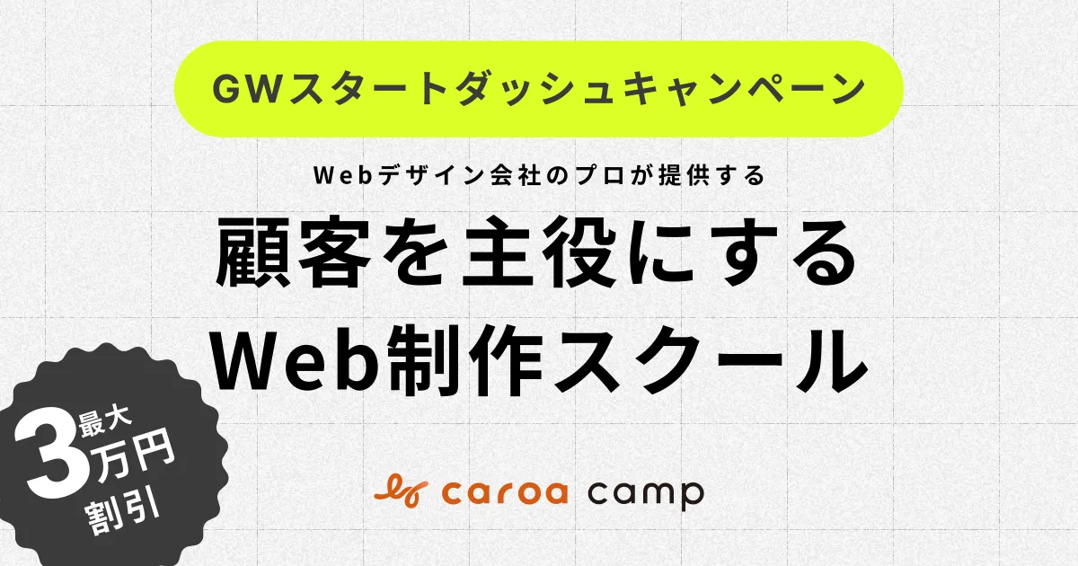 オンラインでWeb制作を学べる「カロアキャンプ」では、ゴールデンウィーク限定の特別キャンペーンを実施中です。この機会に、通常料金から最大3万円も割引されたお得な価格でWebスキルを習得するチャンスです。