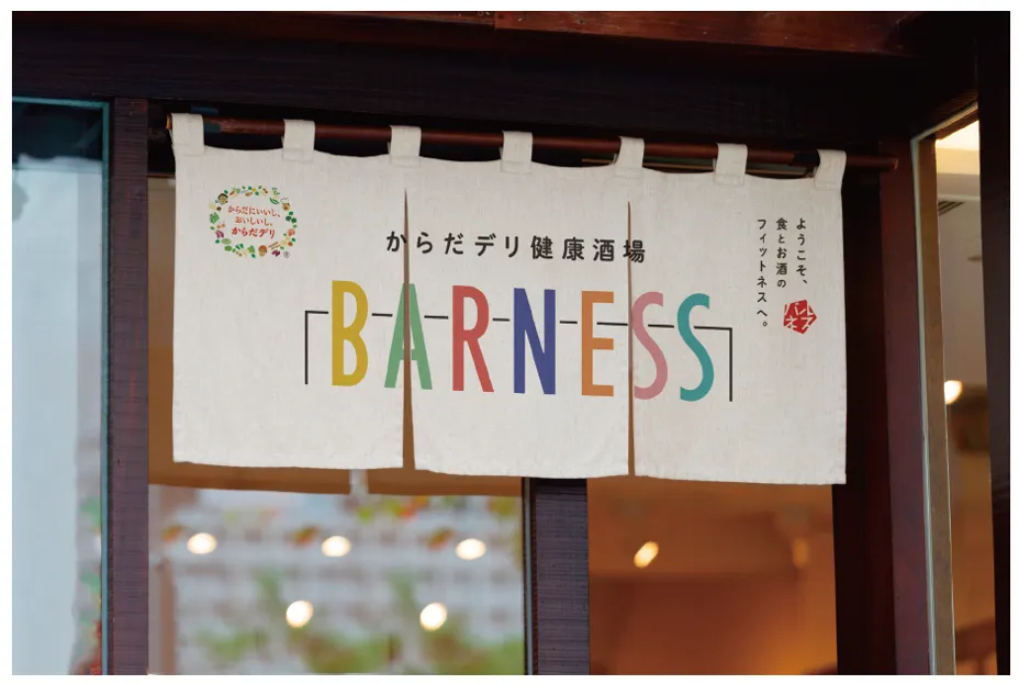 『BARNESS』は、「BAR」と「Fitness」を組み合わせた造語です。フィットネスは、肉体的および健康的に「望ましい」状態を目指し、そのための行動や活動を指します。激しい運動をしなくても、居酒屋という気軽に立ち寄れる場所で健康を目指せるというコンセプトを表現しています。