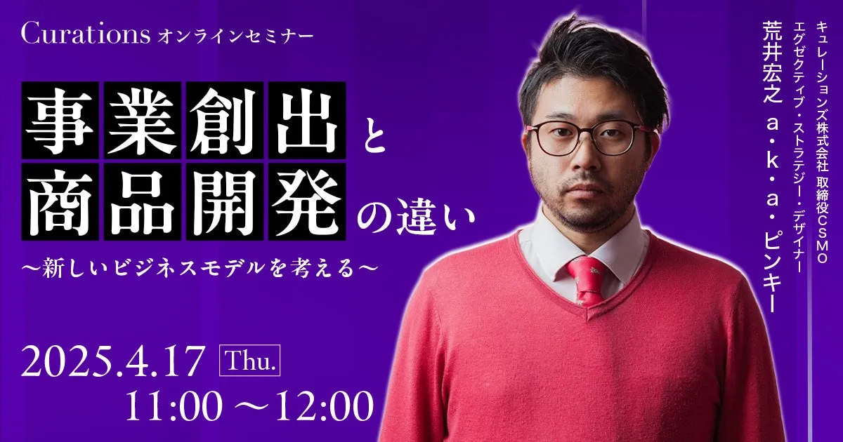 キュレーションズ株式会社は、2025年4月17日(木)の11:00から、「事業創出と商品開発の違い〜新しいビジネスモデルを考える〜」という無料オンラインセミナーを開催します。このセミナーは、経営戦略や事業戦略に関わる全ての方々、特にプロジェクトマネージャーや技術戦略担当者にとって、必見の内容となっています。