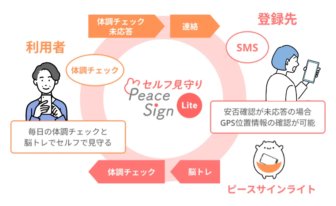 高齢者の自立した生活を支える見守りアプリ『ピースサインライト』