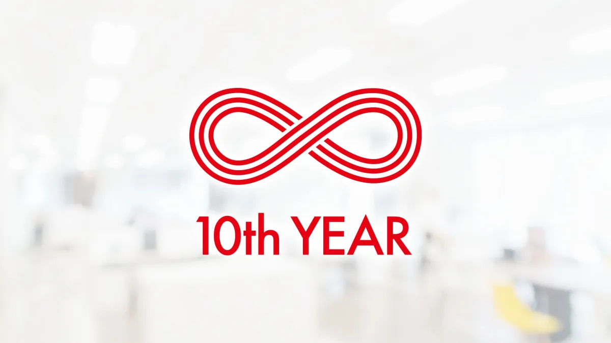 選ばれた記念ロゴは、オープンエイトの社名の由来でもある「ゼロから無限の扉を開く」という考え方をもとにし、次の10年への希望が込められています。