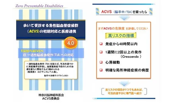 急性脳血管症候群は、脳卒中や一過性脳虚血発作(TIA)など、生命に関わる可能性が高い病態を指します。これらの症例は、発症から治療開始までの時間が予後に大きく影響するため、迅速かつ的確な対応が求められます。特に、症状が軽微に見えることが多く、受診の判断を誤ることがあることから、医療機関や地域での情報連携が不足しているという課題があります。