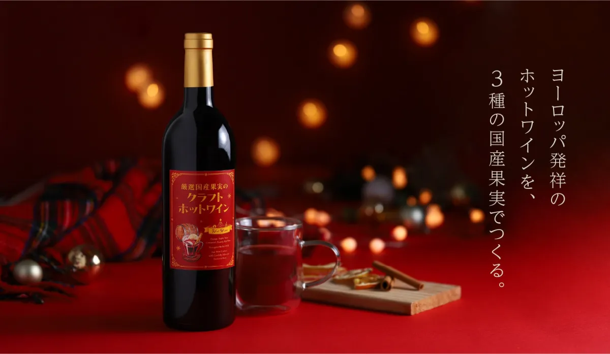 「厳選国産果実のクラフトホットワイン」は、温暖な気候で育った和歌山県の温州みかん、香りが高く上質な国産ゆず、寒暖差から育まれた青森県産のりんごの3種類の果実を使用している。これらの果実は、国内で丁寧に育てられたもので、良質なものだけを厳選。自然な甘みや酸味がしっかりとワインに溶け込み、ジューシーな味わいを楽しむことができる。