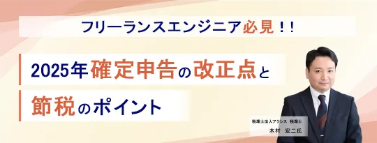 本ウェビナーは、ITフリーランスエンジニア向けに「2025年確定申告の改正点」と「節税のポイント」について詳しく解説されます。