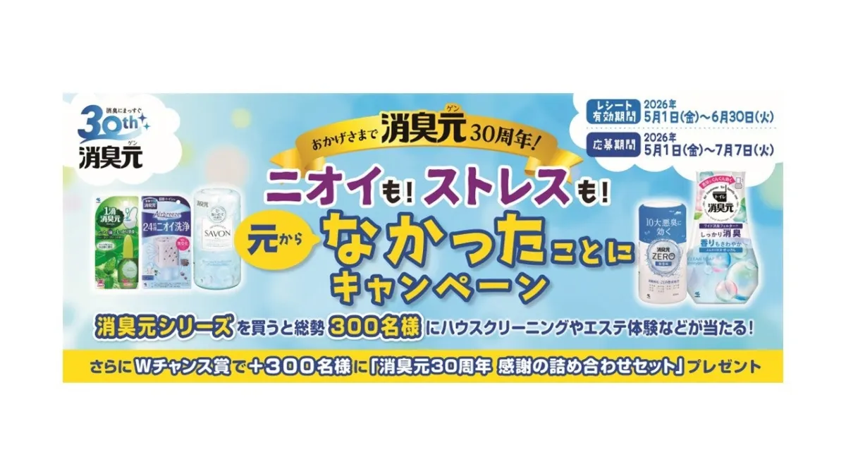 日本の家庭で長年愛用され続けている『消臭元』シリーズが、発売30周年を迎えました。これを記念し、小林製薬株式会社が2026年5月1日から7月7日まで「ニオイも!ストレスも!元からなかったことにキャンペーン」を実施します。本記事では、このキャンペーンの詳細や背景についてお伝えします。
