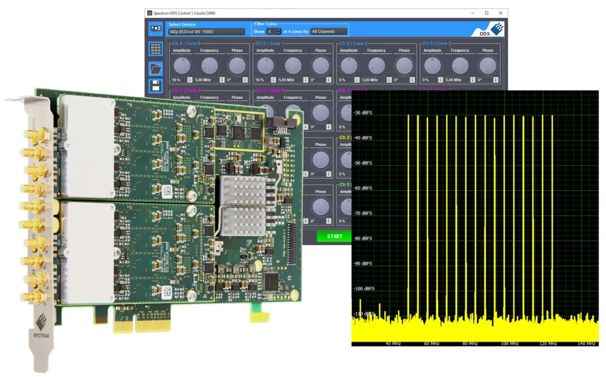 デジタル計測機器の老舗、スペクトラム・インスツルメンテーション社は、65xxシリーズ任意波形発生器(AWG)向けの新機能として、Direct Digital Synthesis(DDS)オプションを発表しました。この新しいオプションによって、高精度な信号源としての柔軟性が向上し、さまざまな信号生成が驚くほどコスト効率良く行えるようになりました。