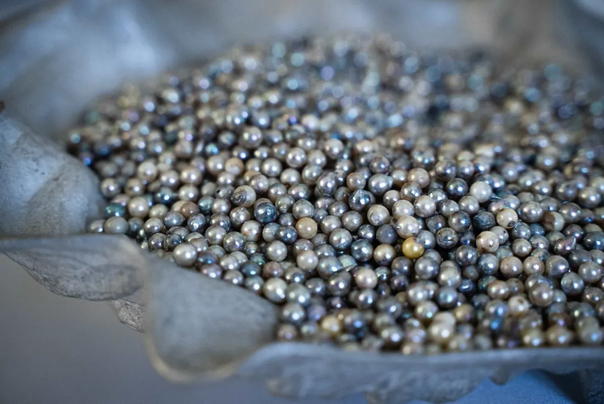 WSPは真珠の奪取が進む中、環境問題にも敏感に対応しています。気候変動や環境変化によってあこや貝の生育する海の環境が悪化する中、WSPは持続可能な天然資源の活用に注力しています。ジュエリーにはならなかった真珠を生かし、廃材を活用した什器を制作するなど、環境に配慮した取り組みを続けています。