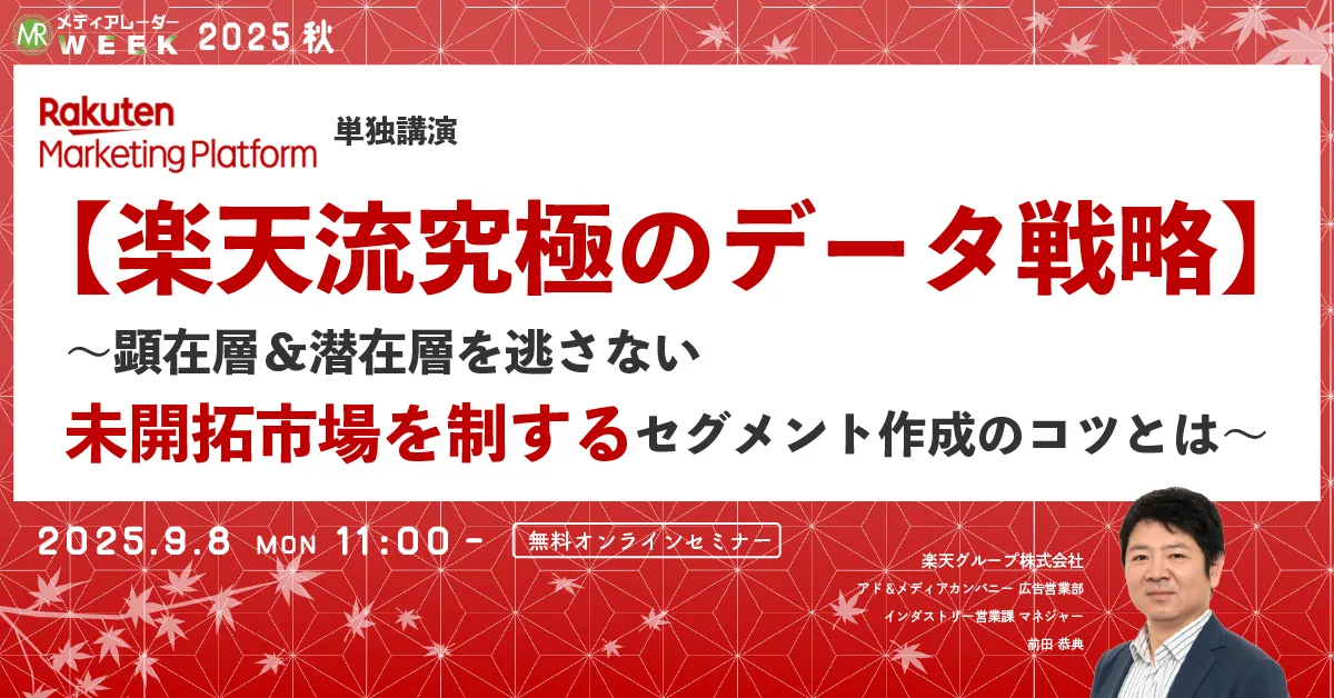 2025年9月8日(月)は、楽天グループ株式会社による特別なオンラインセミナーが行われます。このイベントは株式会社アイズが主催し、その広告業界のプラットフォーム「メディアレーダー」にて、マーケティング担当者や広告代理店向けに企画されたものです。参加登録は無料で、ビジネスに役立つ情報を直接学ぶことができる貴重な機会です。
