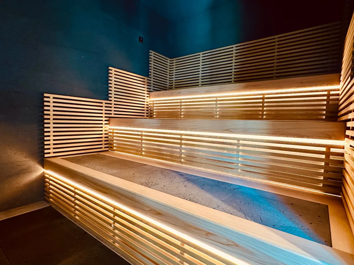「LOCA THE JUNPU」では、国内最上級の会員制サウナ「LOCA THE CLASS」と提携し、マグマスパ式サウナを備えています。富士山の溶岩を用いたサウナで、自然な発汗を促し、心地よいリラクゼーションが楽しめます。水素カプセルやプライベートジムなどの先進的な設備も完備されており、地域特有の「やすらぎの治まり宿泊体験」が実現されています。
