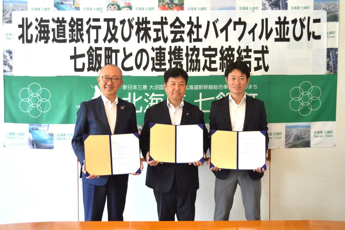 北海道七飯町は、株式会社バイウィルおよび株式会社北海道銀行と共同で、ゼロカーボンシティ実現に向けた連携協定を締結しました。この協定により、3者が力を合わせて地域のカーボンニュートラル達成に向けた取り組みを進めていくこととなります。