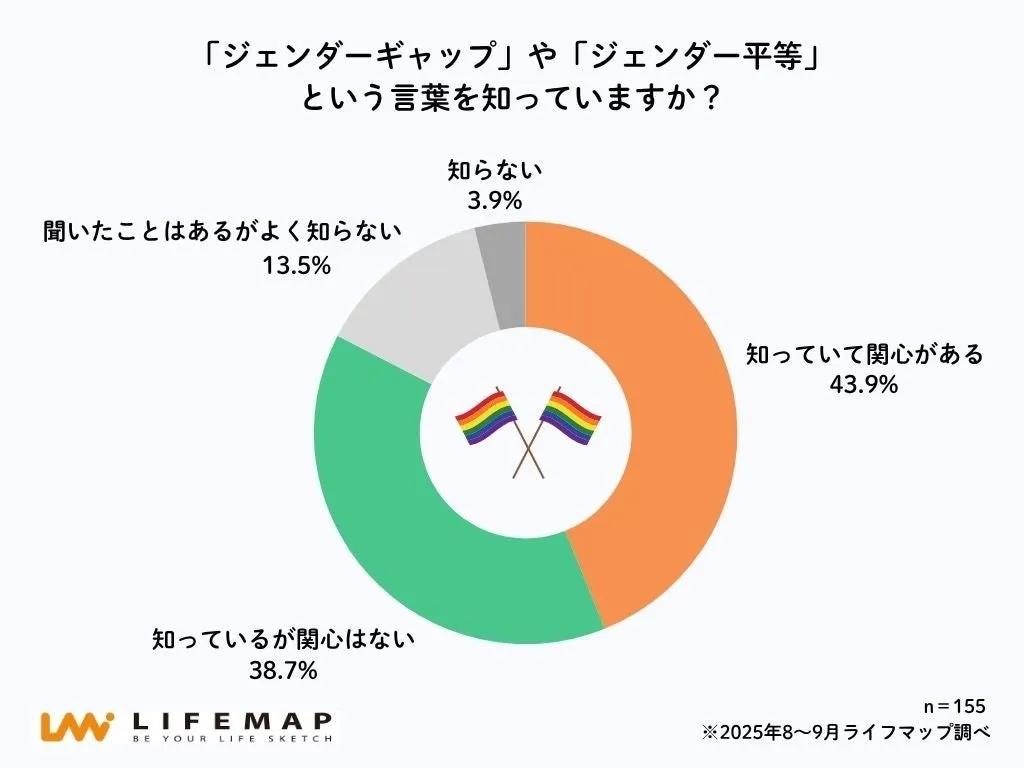 調査では、43.9%の高校生が「ジェンダーギャップ」や「ジェンダー平等」という言葉を知っており、関心があると回答しています。しかし、半数以上の生徒は知識を持っているものの、深く考えたことがないということも明らかになりました。