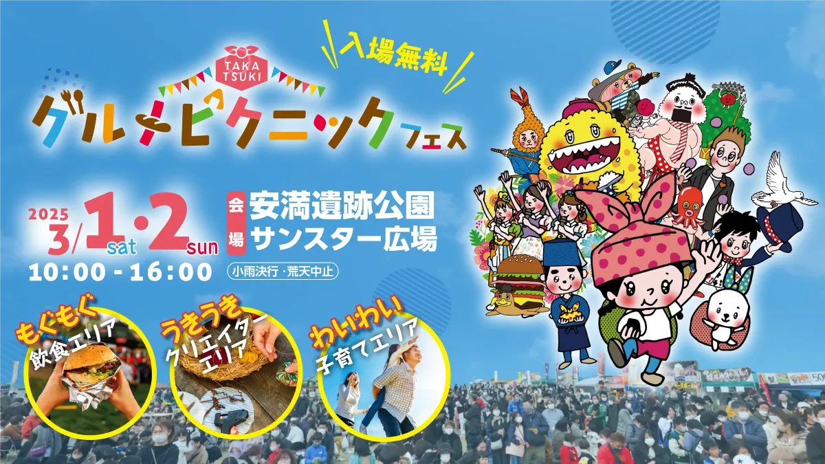 高槻市の安満遺跡公園にて、令和7年3月1日(土曜日)・2日(日曜日)に楽しいイベント「高槻グルメピクニックフェス2025」が開催されます。人気飲食店を中心に、市外からも集まった約40店以上の飲食店舗が参画。市の特産品である高槻唐揚げやご当地グルメのうどんギョーザ、さらには市マスコット「はにたん」にちなんだ最中など、魅力的なメニューが揃います。特に高槻唐揚げ選手権で金賞を受賞した店舗の唐揚げは、必食です!