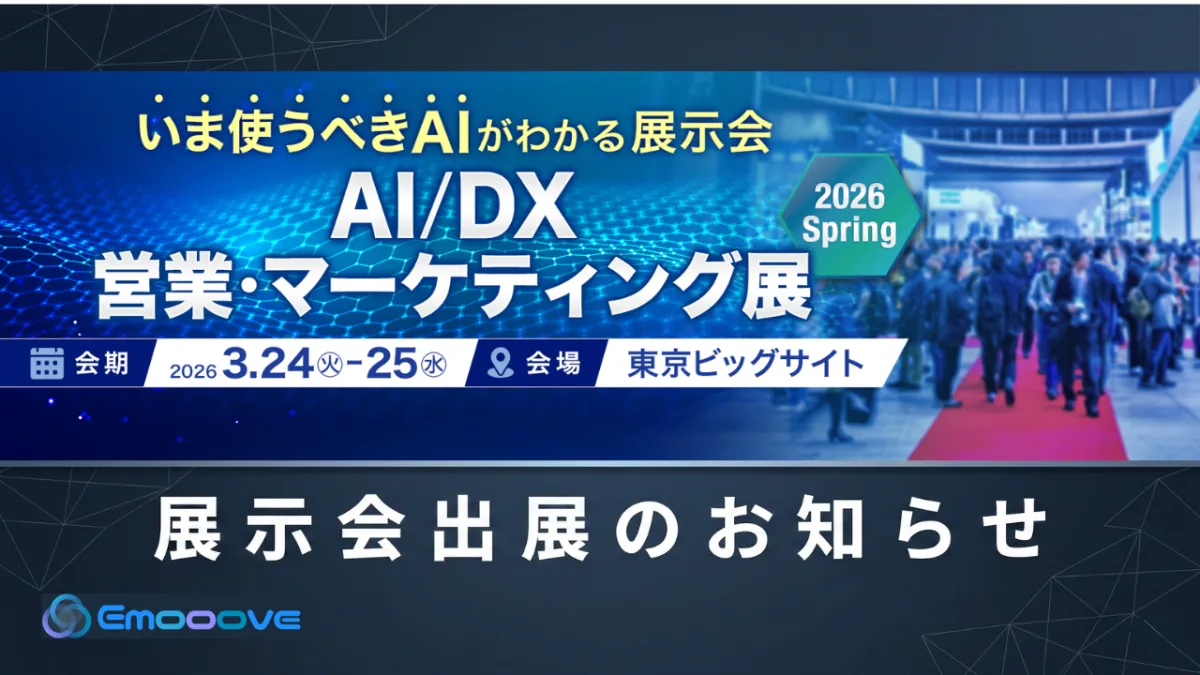 株式会社Emoooveが、2026年3月24日から25日に東京ビッグサイトで開催される『AI/DX 営業・マーケティング展 2026 Spring』に出展します。ここでは、新時代の営業手法を模索する企業担当者の皆さんに向けて、最新の営業支援サービスを紹介します。