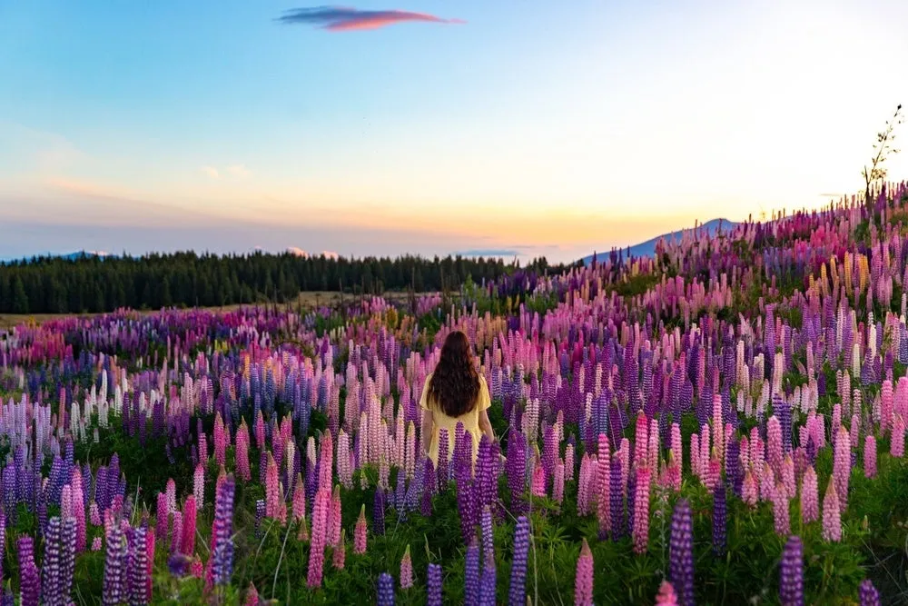 ニュージーランドのテカポ湖は、初夏に青と緑の美しいコントラストが楽しめる絶好のスポットです。湖畔には色とりどりのルピナスが咲き誇り、ファンタジックな風景が広がります。特に朝焼けと夕暮れの時間帯には、自然の色彩が織りなすグラデーションが息をのむほどの美しさに。