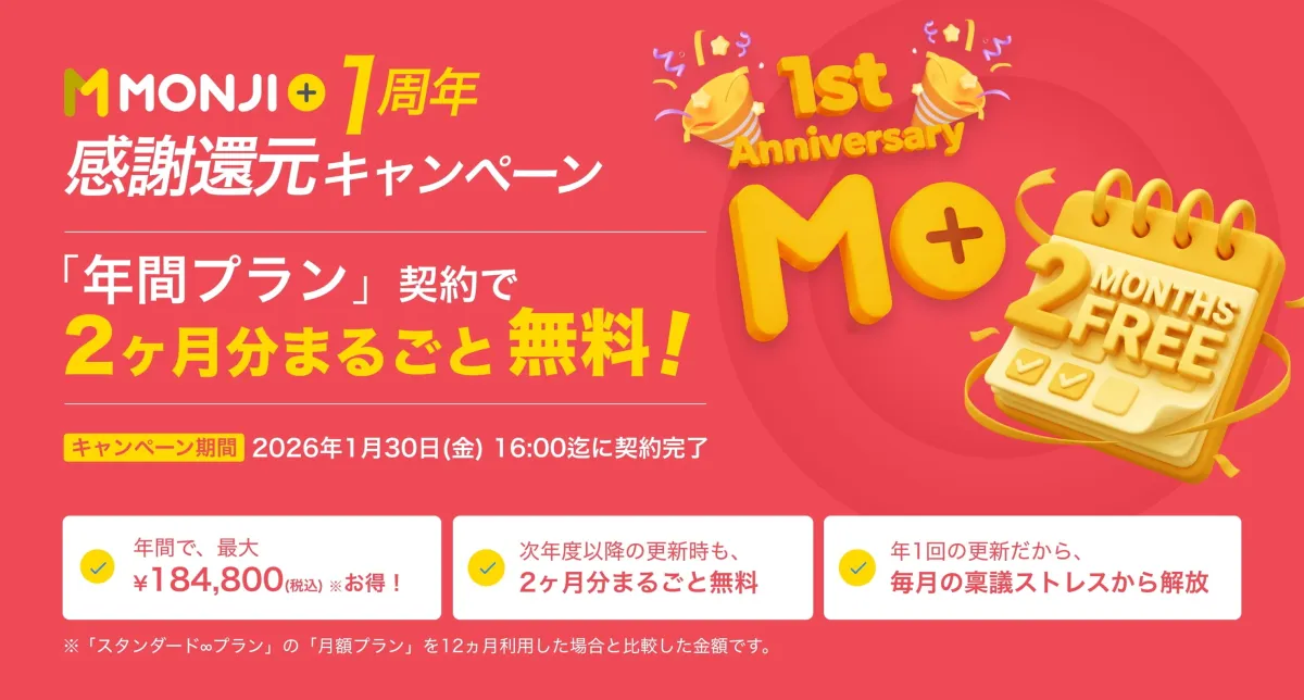 ALAKI株式会社が提供するWebサイト運用支援プラットフォーム「MONJI+」が、2026年1月30日までの期間限定で新たなキャンペーンを実施しています。このキャンペーンは、リリースから1周年を迎えるにあたり、利用者への感謝を込めた特別な内容となっています。