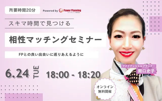 パワープランニング株式会社が提供する「アットセミナー」では、6月24日(火)18時より特別なオンラインセミナー「相性マッチングセミナー」が開催されます。このセミナーでは、参加者が自分に合ったファイナンシャルプランナー(FP)を見つけるサポートを提供します。