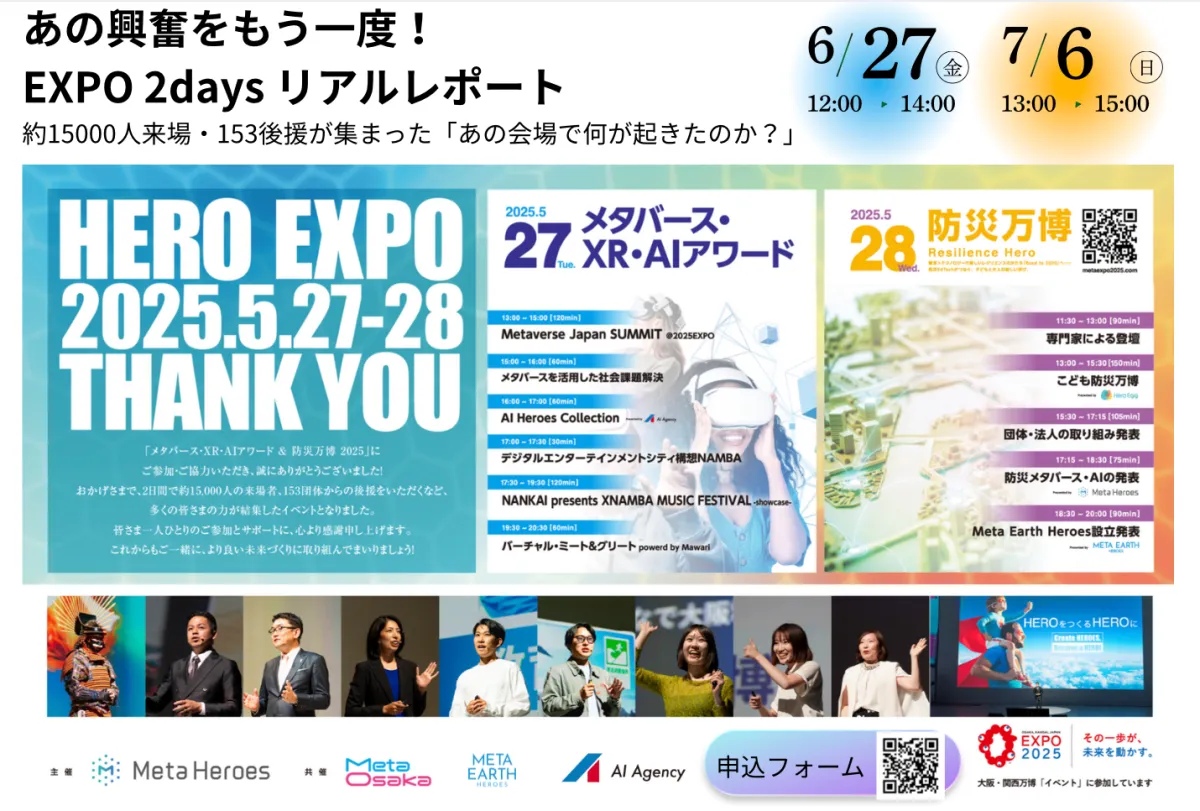 株式会社Meta Heroesとそのグループ会社であるMeta Osakaが共催するこの報告会は、参加者の皆さんにイベントの裏側を知ってもらうことを目的としています。特に、万博に参加できなかった方にもその価値を伝え、今後のビジネスや地域連携に役立つ知見を分かちあうことを重視しています。
