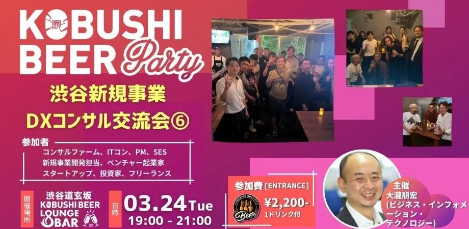 2026年3月24日、東京都渋谷区に位置する『KOBUSHI BEER LOUNGE & BAR』で、生成AI時代のDX(デジタルトランスフォーメーション)実装をテーマにした交流会が開催されます。このイベントは、ビジネス・インフォメーション・テクノロジーの大瀧氏をゲストに迎え、DXの実務に携わるさまざまな職種の参加者が集まります。
