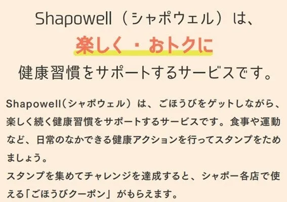 「Shapowell」は、健康を増進したいと考えている全ての人々を対象に、簡単に参加できるプログラムを提供します。具体的には、日常生活に取り入れやすい健康アクションが多数用意されており、参加者は自分のペースで進めることが可能です。この活動の最大の魅力は、健康に気を配りながら、お得な特典を得られる点です。