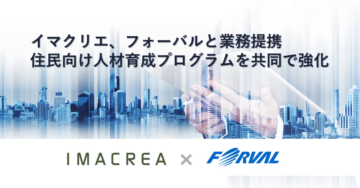 この提携により、イマクリエの住民向け人材育成プログラムにフォーバルの「企業ドクター」育成カリキュラムが組み込まれることになり、プログラム参加者はより多様なキャリアパスを持つことができるようになります。地域自治体にとっては、これまでの支援に加えて、新たなリスキリングの機会と雇用の道が用意され、地域全体の経済活性化が期待されています。