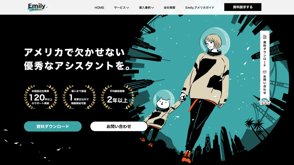 - - 事業内容: アメリカ市場に特化したオンライン支援サービス「Emily. アシスタント」の運営