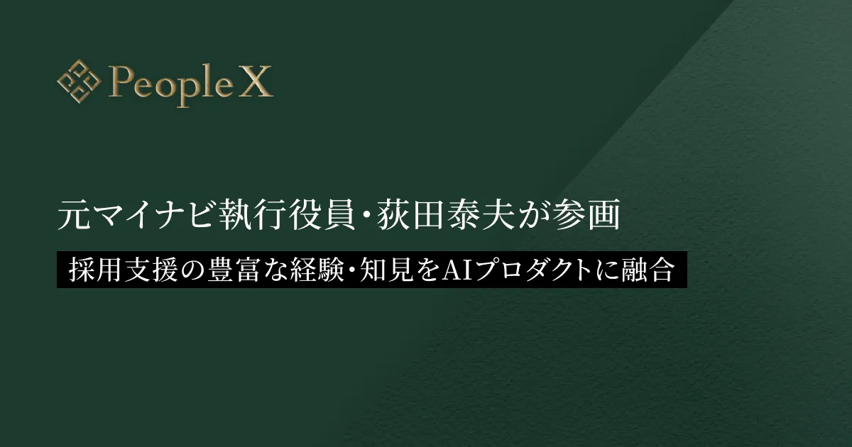 PeopleXは「地球上で働くすべての人への支援を通して成功に導く」という理念の元、対話型AI面接サービスである「PeopleX AI面接」を展開しています。荻田氏の加入は、彼が持つマイナビでの採用支援に関する長年の実績を活かすことが意図されています。