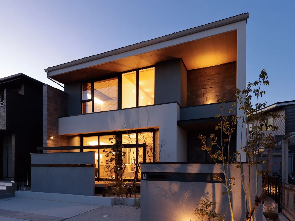 外観はスクエアでスタイリッシュなデザインが特徴で、屋根や外壁の断熱性能が強化されているため、見た目だけではなく機能性も兼ね備えています。完成された間取りは4LDKで、ウォークインクローゼットやシューズクロークも完備されています。また、シンプルで美しいファサードが街並みに溶け込みつつ、洗練された高級感を演出しています。