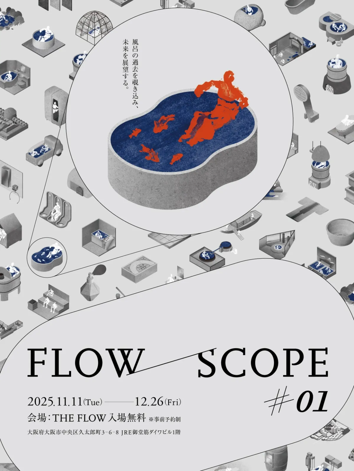 「FLOW/SCOPE」の開催期間は2025年11月11日(火)から12月26日(金)まで。入場は無料で、事前予約が必要です。会場は、大阪府大阪市中央区のTHE FLOWに位置しており、風呂文化の躍動感を感じられる空間が広がっています。